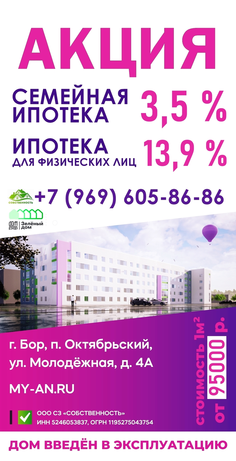 Общество с ограниченной ответственностью специализированный застройщик «Собственность» завершило строительство многоквартирного жилого дома, расположенного по адресу: Нижегородская область, город Бор, п.Октябрьский, ул. Молодежная, д. 4А